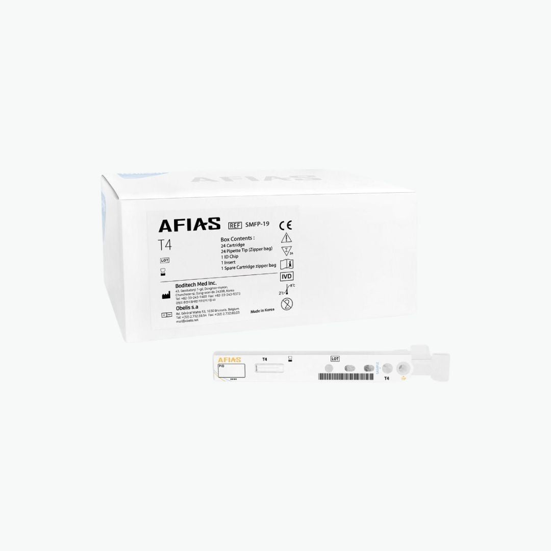 AFIAS T4 is a fluorescence immunoassay (FIA) for the quantitative determination of total Thyroxine (total T4) in human serum/plasma. It is useful as an aid in management and monitoring of thyroid disorders.